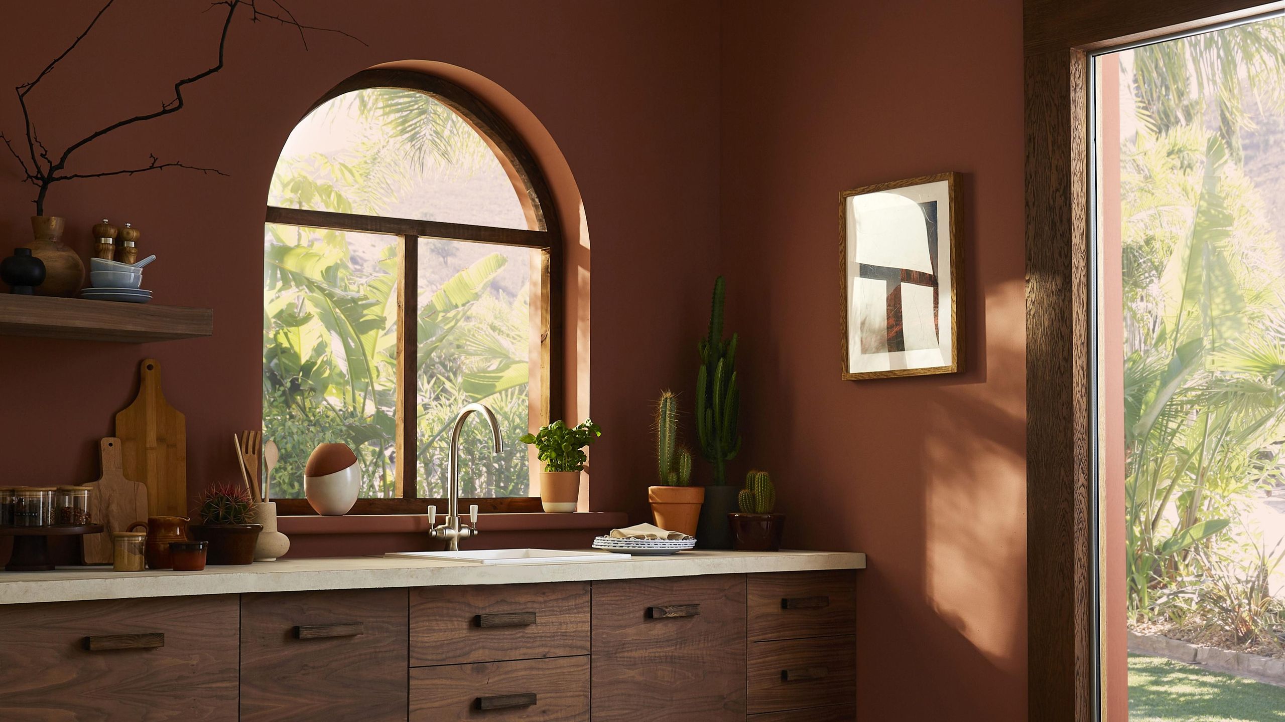 - Deep burgundy or autumnal kitchen decor for depth and richness